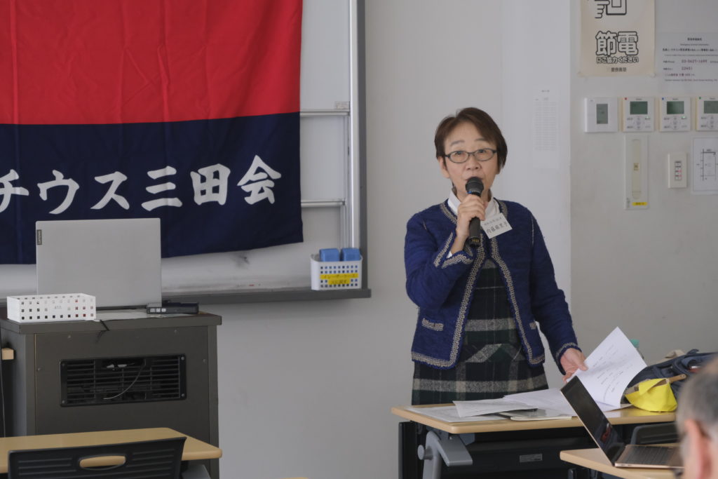 5月に開催した「ライチウス三田会創立25周年お祝いの会」の報告の後、2030年に迎える「ライチウス会創立100周年」に向けて準備を開始していくこと、会の名称のルーツはフィンランドにあり、調査の結果、フィンランドには現在も全国組織として「ライチウス友の会」(仮称)が活動しており、さらなる調査の継続に大きな意義があると伝えました。